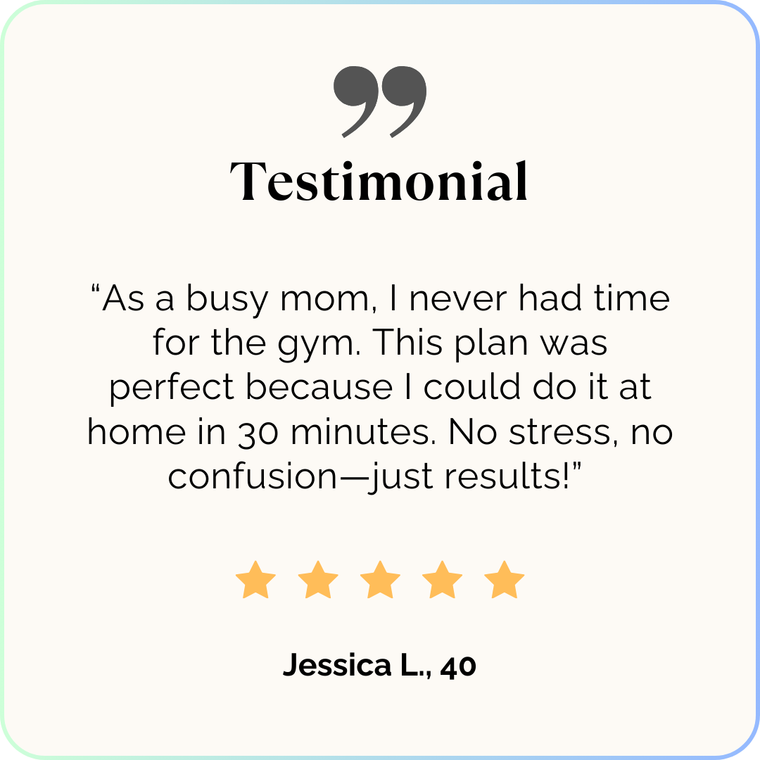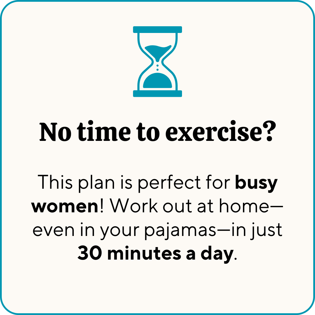 In just 30 minutes a day, you’ll build strength, boost your energy, and create a routine you can stick with. But this plan is about more than just workouts—it’s about showing up for yourself, building confidence, and loving how you feel inside and out.