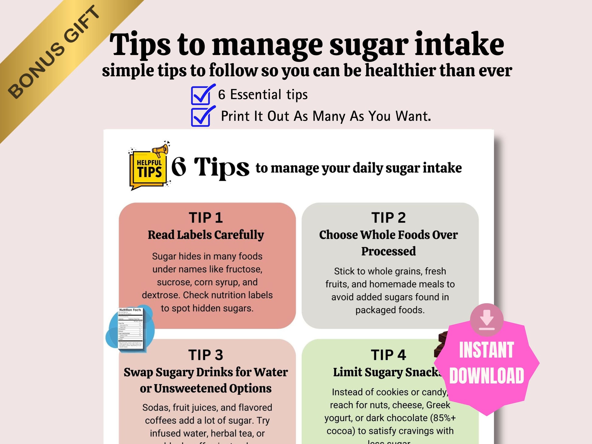 Take the guesswork out of sugar intake with our Natural Sugar Content Chart – a must-have guide for anyone looking to eat smarter and live healthier. This beautifully designed, printable resource provides: