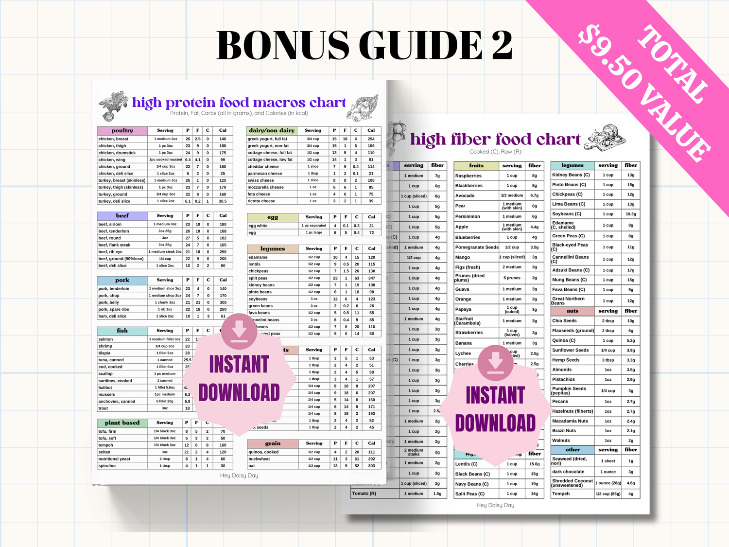 High Protein Macros & High Fiber Chart