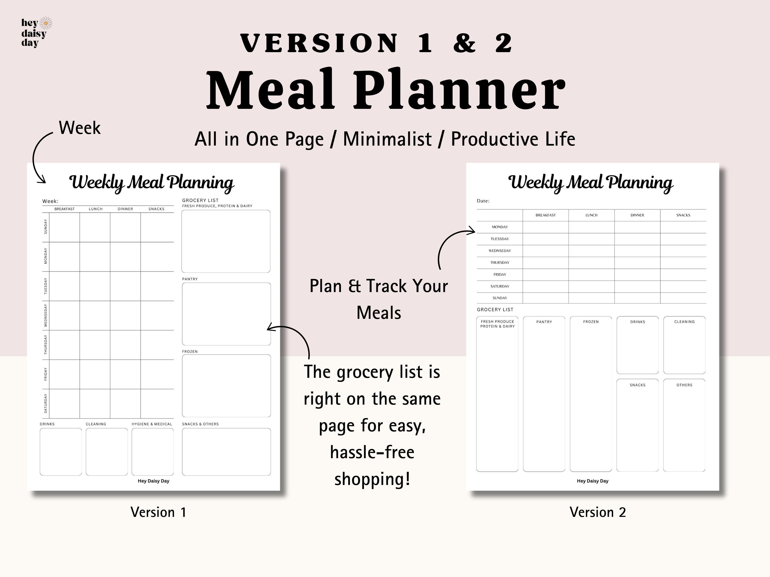 Simplify meal planning with this Printable & Digital Meal Planner! Includes 3 versions, macro & calorie tracker, grocery lists, meal prep ideas, and recipes.