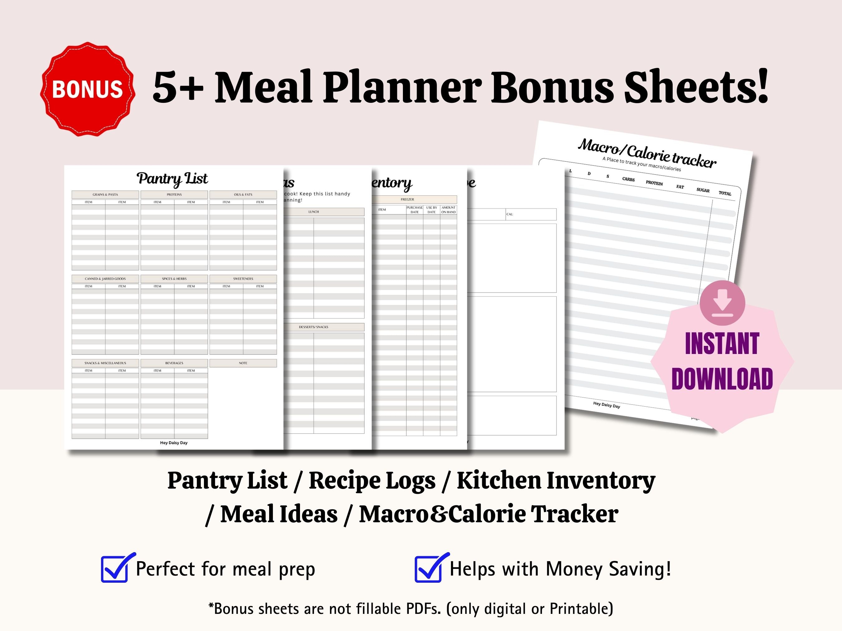📌 Meal Planning Sheets – Plan breakfast, lunch, dinner, and snacks effortlessly.