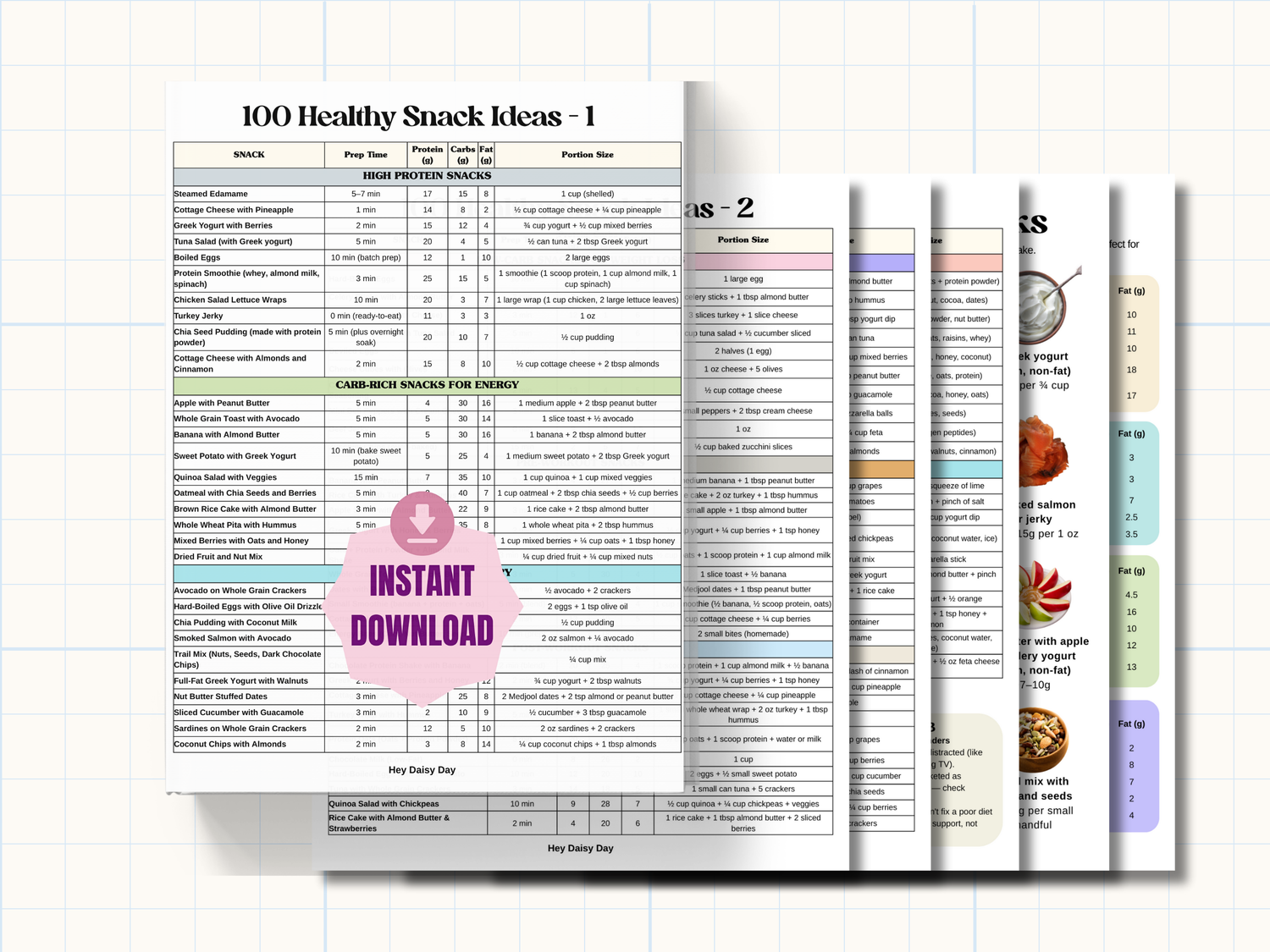 100 Healthy Snack Ideas â No more guessing when hunger strikesâsnack smarter with these high-protein and low-sugar ideas